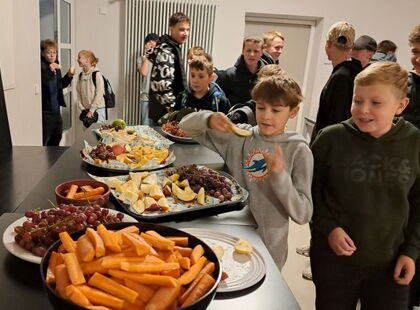 Im Rahmen der Woche der Gesundheit und Nachhaltigkeit boten wir unseren Schülerinnen und Schülern während der Pause in der Mensa gratis Kostproben nachhaltiger und gesunder Lebensmittel an. Das geschnittene Obst und Gemüse sowie Vollkornbrotschnitten lockten viele Interessierte und Hungrige an. Erstaunlich, wie schnell die Tabletts leergefegt waren!