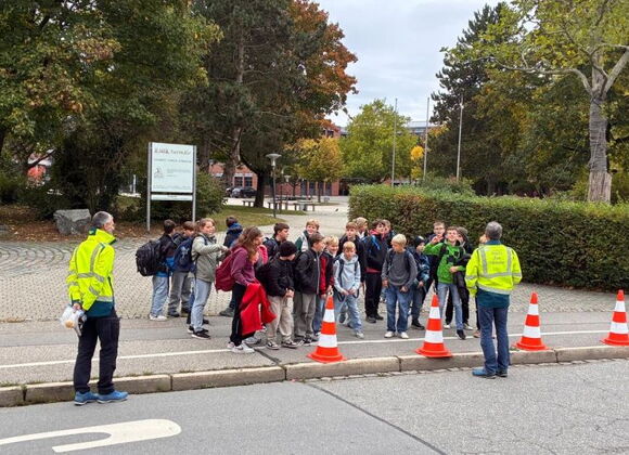 Ganz besonders liegt uns am Herzen, dass alle Schülerinnen und Schüler gesund und munter zur Schule und wieder nach Hause kommen. Deswegen durften alle Fünftklässler beeindruckende Demonstrationen und Gefahrensituationen beim Busfahren hautnah miterleben.