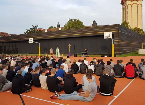 Bereits am zweiten Schultag im neuen Schuljahr stimmten wir uns nicht nur innerhalb der Klassen auf das neue Schuljahr ein, sondern auch als Schulgemeinschaft bei einem Freiluft-Gottesdienst.