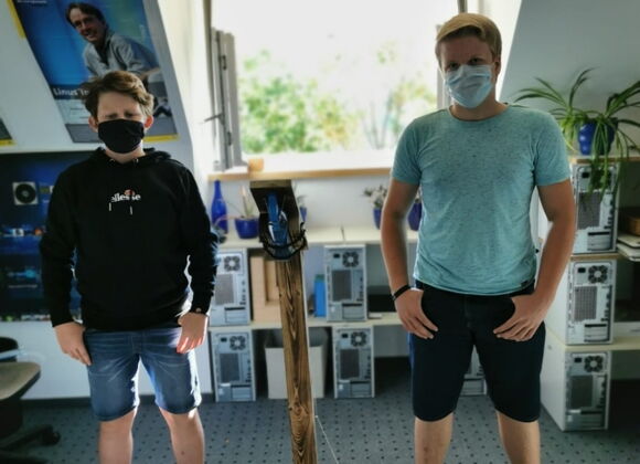 Dieses Schuljahr steht ganz im Zeichen von Corona. Gleich in den ersten Schulstunden wurden die Schüler über die Hygienevorschriften und das entsprechende Verhalten eingehend informiert. Zwei Schüler der 9. Jahrgangsstufe kamen hier auf eine geniale Idee ...