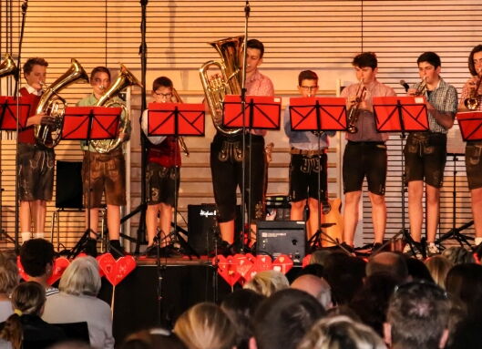 Nicht nur Mütter wurden nach dem Muttertag am 13. Mai noch einmal beschenkt – und zwar musikalisch. In der neuen, bis auf den letzten Platz gefüllten Dreifachsporthalle der JSR fand nämlich das schon zur Tradition gewordene Muttertagskonzert statt. Dabei bewiesen alle Musikensembles der Schule ihr Können. Liebevoll war die Bühne mit unzähligen gefalteten Herzen am Stiel dekoriert, die unter der Leitung der Kunstlehrerinnen Alexandra Ehrl und Elisabeth Wolf entstanden waren.