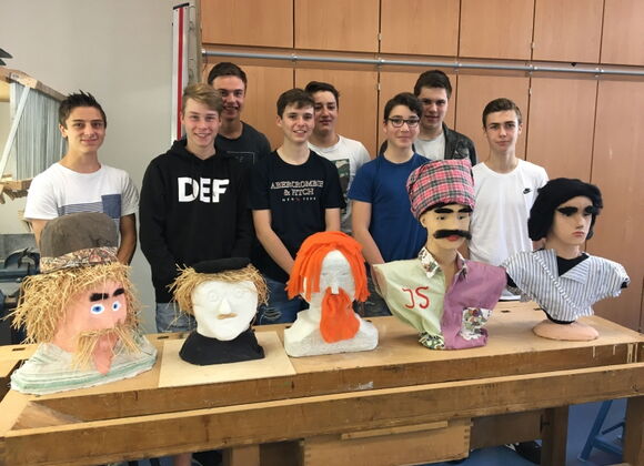 Als ein wunderbares Ergebnis ihrer wochenlangen Arbeit präsentierten die Schüler der Werkklasse 9 D von Frau Ehrl ihre kreativ gestalteten Büsten, wie sie sich unserern Namensgeber Jakob-Sandtner vorstellen. Ob mit Pappmaché, Yton-Stein, Gips oder auf Draht - jeder Kopf ist ein Unikat!