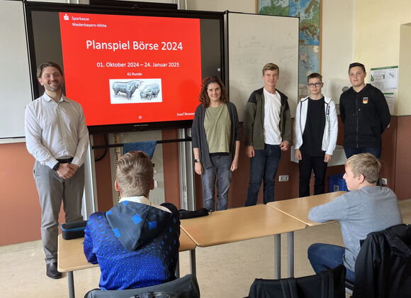 Die Kapitalanlage ist im Lehrplan des Faches „Wirtschaft und Recht“ der 9. Jahrgangsstufe ein zentraler Punkt. Um dieses wichtige Thema, das alle Schüler im späteren Leben betreffen wird, näherzubringen, lud Frau Zollner Herrn Brunner von der Sparkasse Straubing ein. Dieser ist Wertpapierberater und kennt sich somit bestens mit Aktien und anderen Anlagemöglichkeiten aus.