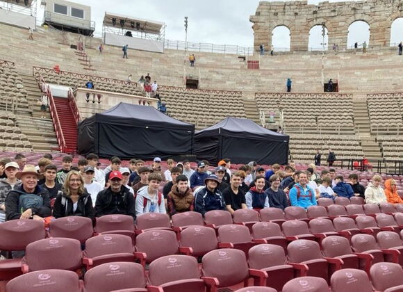 Die Vorfreude war groß, als am Montag, den 16.09.2024, die Schüler der Klassen 10 A, 10 D und 10 E mit ihren Klassenleitern und Begleitlehrkräften die lang ersehnte Abschlussfahrt nach Italien antreten durften. Nach gut acht (???) Stunden Busfahrt war es geschafft: Wir erreichten den Campingplatz Cisano in Bardolino und die Schüler durften in Vierergruppen ihre kleinen Bungalows beziehen. Nach einer kurzen Erkundungstour durch die weitläufige Anlage genossen wir das erste Mal ein typisch italienisches Pastagericht im dort anliegenden Restaurant. Erschöpft von den Strapazen der Anreise ließen wir den Abend auf den Terrassen unserer Steinbungalows ausklingen.