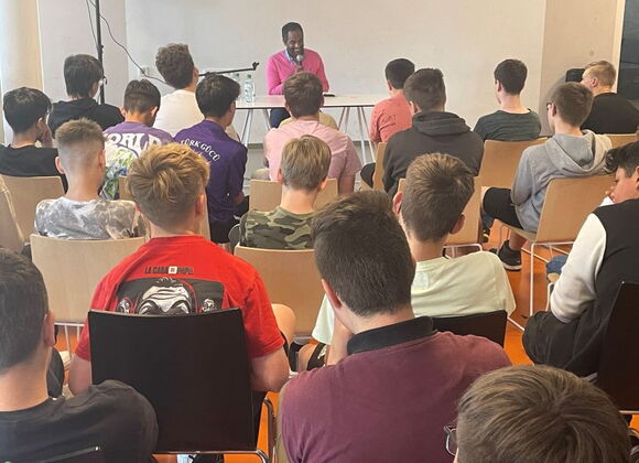 Dr. Umes Arunagirinathan besuchte die Jakob-Sandtner-Realschule für eine Lesung aus seinem aktuellen Bestseller "Grundfarbe Deutsch". Auf Anregung eines unserer Schüler, der über das Buch "Allein auf der Flucht" im Deutschunterricht referiert hatte, und in Kooperation mit Bücher Pustet konnte der Autor nach Straubing geholt werden. Er las dabei nicht nur aus seinem aktuellen Werk vor, sondern nahm die Schüler der 7. Jahrgangsstufe mit auf eine sehr persönliche Reise eines Mannes, der als Junge aus Sri Lanka vor dem Bürgerkrieg geflohen war und sich seinen Traum vom Abitur und Medizinstudium in Deutschland erfüllen konnte.