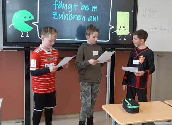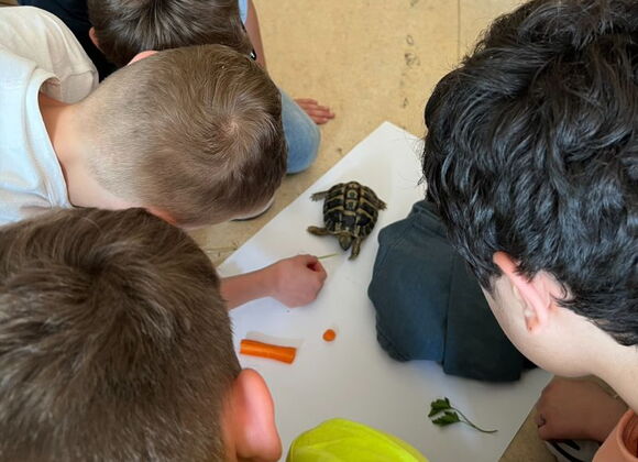 Die Klasse 5 B hatte dieses Jahr ganz besonderen Besuch in ihrem Unterricht. Zusammen mit Yoda, Speedo und Momo, drei Griechischen Landschildkröten, erarbeiteten sie neuen Wortschatz und ließen Rollenspiele lebendig werden.