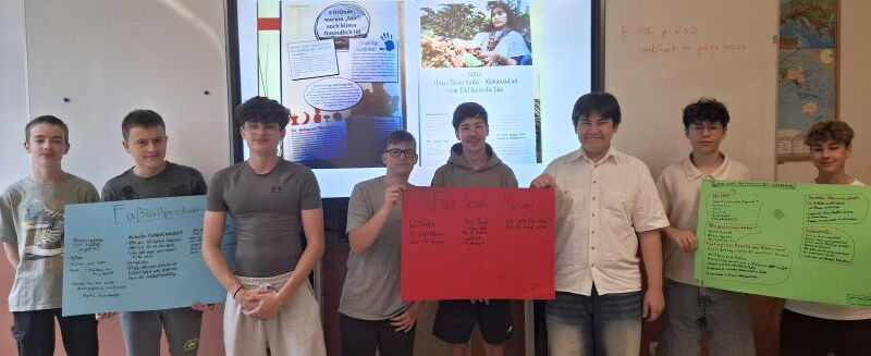 In Gruppenarbeit vertiefte Schulsozialpädagogin Renate Boyen die Probleme herkömmlicher Produktions- und Vermarktungsmethoden – am Beispiel von Bananen, Kakao und Fußbällen – und stellte Bezüge zu Umwelt- und Sozialfragen her.
