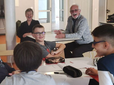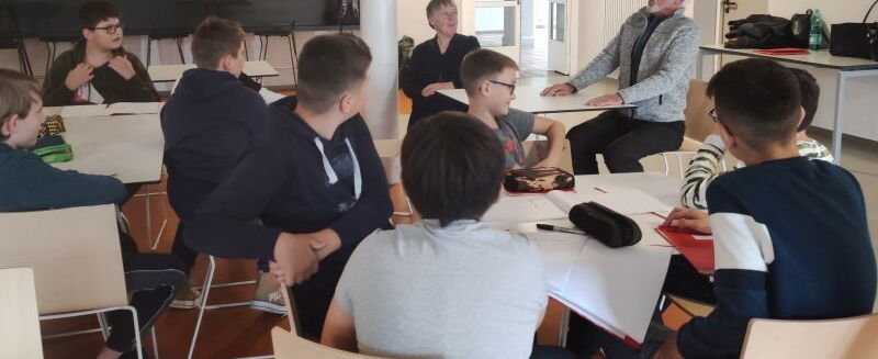 Zunächst hatten die Schüler der Klasse 6 C mit ihrer Englischlehrerin Frau Keller die Gelegenheit, den Besuchern aus England im Unterricht gesammelte Fragen zu stellen. Hier zeigte sich sehr deutlich, dass die Jungen nicht nur sehr wissbegierig sind und Informationen über England und das Vereinigte Königreich sammeln wollten, sondern auch, dass sie sehr gut in der Lage sind, in der Fremdsprache zu kommunizieren. Die Fragen erstreckten sich über alltägliche Details zum Leben auf der Insel bis hin zu solchen nach ganz persönlichen Vorlieben der Gäste. So entstand völlig ungezwungen ein angeregtes Gespräch, bald war die anfängliche Scheu, in der Fremdsprache zu kommunizieren, abgelegt.