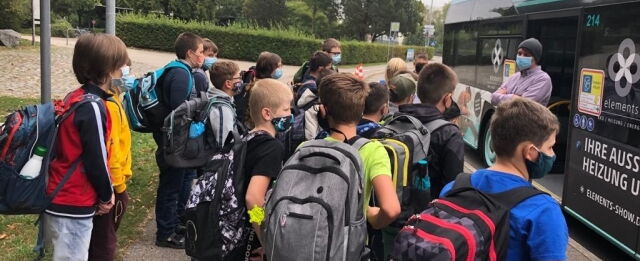 Gerade jüngere Schüler können die Gefahren eines herannahenden Buses nicht abschätzen. Schubsen und Drängeln an einer Bushaltestelle gehört für viele einfach dazu. Der Busfahrer wird schon aufpassen und frühzeitig bremsen! Dass dies nicht immer möglich ist und dass das Busfahren Gefahren mit sich bringt, durften die Schüler anhand von einprägsamen Demonstrationen mit einem von den Stadtwerken zur Verfügung gestellten Bus hautnah erfahren.