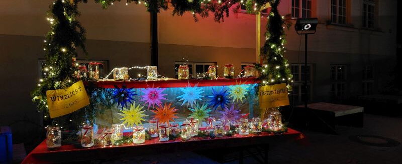 Dunkel, still und menschenleer, so liegt das schöne Altbaugebäude der Jakob-Sandtner-Realschule jeden Abend am Rand der belebten Fußgängerzone. Es ist nach Schulschluss und kein Mensch ist zu sehen, kein Geräusch zu hören. Aber nicht am Abend des 7.12.2022! Wer an diesem Tag um die Ecke bog und in den Innenhof spähte, erblickte weihnachtlich geschmückte Buden, lodernde Feuerschalen und fleißige Schüler und Lehrkräfte, die ihre selbstgemachten Speisen und Produkte den zahlreichen Besuchern zum Kauf anboten. Unter der Organisationsleitung von Frau Dietlmeier wurde der JSR-Pausenhof von engagierten Mitgliedern der Schulfamilie in einen wahrhaftigen Wintermarkt verwandelt, der dem Straubinger Christkindlmarkt in nichts nachstand.
