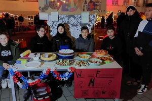 Während der Elternbeirat die Gäste mit Glühwein und Kinderpunsch erwärmte, konnte man sich beim Grillstand der SMV und des Fördervereins stärken. Die Besucher*innen hatten die Qual der Wahl, sich zwischen den vielen selbstgemachten Köstlichkeiten der Schüler zu entscheiden: Dürfen es französische Leckereien, Schokofrüchte oder doch frischgebackene Waffeln sein? Wer nach einer kleinen Stärkung dann noch auf der Suche nach ein paar schönen Weihnachtsgeschenken war, wurde sicherlich an einem der vielfältigen Verkaufsstände fündig. Bunte Weihnachtssterne und Windlichter, englische Weihnachtsgrußkarten, duftende Seifen und Badezusatz, vor Ort versilberte Christbaumkugeln, Hundespielzeug und noch vieles mehr konnte erstanden werden.