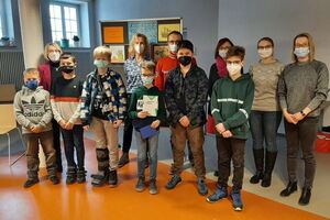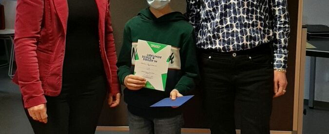 Er erhielt aus den Händen der Schulleiterin die Siegerurkunde und von Frau Schapfl als Vertreterin des Elternbeirates einen Büchergutschein.