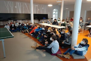 Zur Auflockerung hatte Frau Dahlems, die diesen Wettbewerb jedes Jahr hervorragend organisiert, einen zauberhaften Überraschungstext vorbereitet, den die Ersatzleser vortrugen, während den Zuhörern das passende Bilderbuchkino dazu präsentiert wurde.