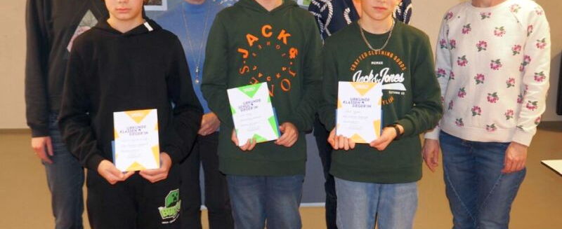 In der nun folgenden Leserunde wurde aus „Hugo hebt ab“ von Sabine Zett vorgelesen und man musste zeigen, dass man auch einem unbekannten Text gewachsen ist. Anschließend war die Jury bestehend aus Frau Zukowski, Frau Schapfl und Frau Houben gefragt, eine Entscheidung zu treffen. Dann stand der Lesesieger des Schulentscheids fest: Erik Frisch aus der Klasse 6 C, der aus den Händen von Frau Schapfl als Vertreterin des Elternbeirats sowie der Schulleiterin Frau Houben neben einer herzlichen Gratulation die Siegerurkunde und einen Buchgutschein erhielt.