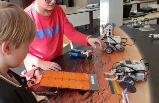 Im Musiksaal durften die Kinder viele verschiedene Instrumente ausprobieren und den Musikgruppen bei ihren Minikonzerten lauschen. Weiter ging es zu den EDV-Räumen. „Bist du schlauer als KI?“, lautete die Frage der IT-Fachschaft. Die Grundschüler zeichneten hier digital am Smartboard gegen künstliche Intelligenz und spielten an den PCs gegen den KI-Generator Memory. Besonders beeindruckend war das Programmieren mit LEGO-Mindstorms.