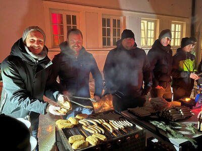 Für den passenden winterlichen Rahmen sorgten nicht nur das schneereiche Ambiente und die weihnachtliche Beleuchtung, die Schulband und die Bläsergruppe verzauberten ebenso wie eine authentisch-singende Jukebox die großen und kleinen Zuhörer. Ein wahrlich gelungener Winterzauber!