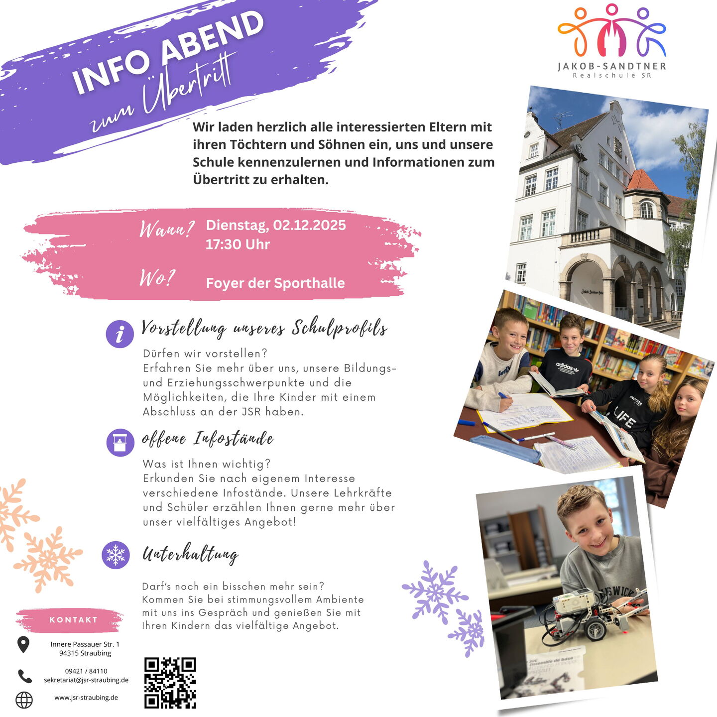 Wir freuen uns, wenn Sie sich entscheiden, dass Ihr Kind auf unsere Schule wechselt. Seit dem Schuljahr 2025/26 nimmt die JSR auch Mädchen auf!